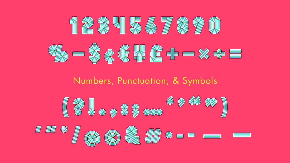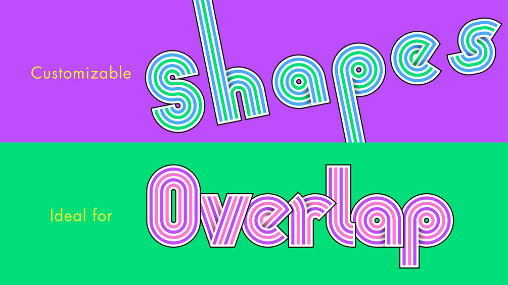 Roller Rink is a modern, geometric, sans-serif, monoline, display typeface, drawing inspiration from the era of roller disco, vinyl records, popcorn boxes, video stores, and candy shops. It's built to be customized for your forward-thinking work, entirely with vectors, even the shading. It's ideal for greeting cards, posters, flyers, t-shirts, scrapbooking, product packaging, editorial layouts, album covers, books, marketing campaigns, advertising, social posts, and so much more!